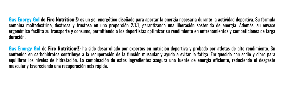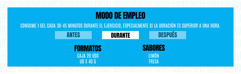 A linha Gas Energy Gel Series é uma fórmula desenvolvida por nossa equipe científica de nutricionistas e dietistas, testada por atletas de alto rendimento. Ao treinar por mais de uma hora, é aconselhável consumir carboidratos durante a sessão. A ingestão recomendada é de, no mínimo, 60 a 80 gramas de carboidratos por hora, podendo ser combinada com a nossa linha Iso Fire Gas Series para manter essa proporção.