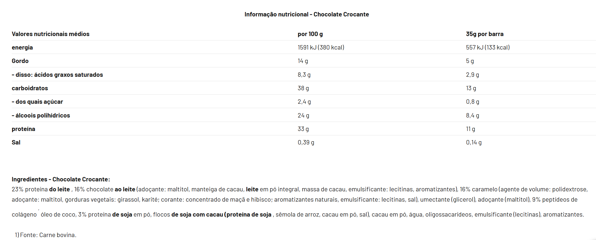 Atenção, atletas! Com a Crunch Bar da Best Body Nutrition, você pode se deliciar sem culpa. Esta barra crocantede 35 gramasimpressiona não só pela sua textura leve e proteica ebaixo teor de açúcar, mas também pela sua composição única. Coberta com crocantes flocos de soja e um delicioso creme de caramelo no interior, banhada em chocolate ao leite suave, a Crunch Bar é uma verdadeira delícia.
